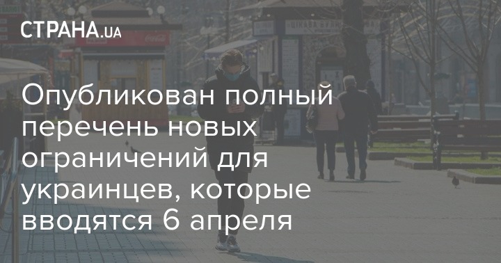 Премьер-министр Украины Денис Шмыгаль опубликовал полный список новых ограничений, принятых Кабмином, из-за коронавируса. Дополнительные меры вводятся с 6 апреля.