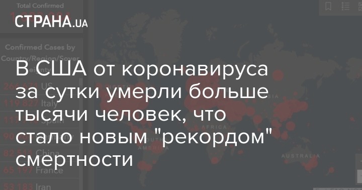 В Соединенных Штатах Америки за сутки умерли 1169 человек, зараженных коронавирусом. Этот показатель скончавшихся за день стал самым большим в мире.