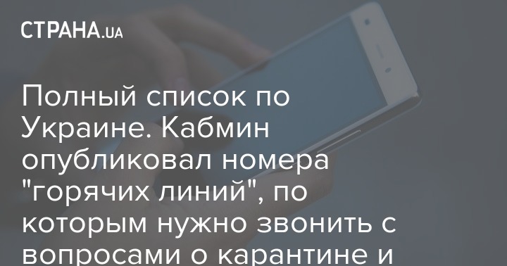Кабинет министров Украины обнародовал номера региональных горячих линий, куда украинцы могут обратиться в случае возникновения вопросов, связанных с коронавирусом и, соответственно с карантином