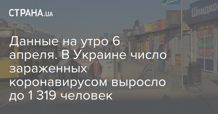 В Украине, на утро 6 апреля зафиксировано уже 1 319 случаев коронавирусной болезни. А вчера вечером в стране таких случаев было - 1308. Как видим идет рост.