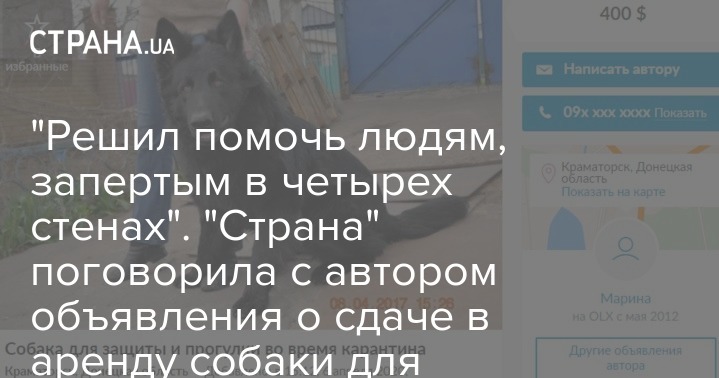 Корреспондент "Страны" позвонил по одному из объявлений о сдаче в аренду собак для прогулок, размещенных на ресурсе OLX.