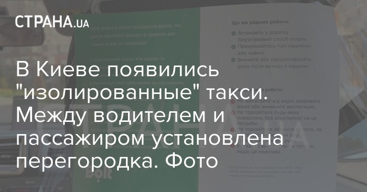 Служба такси Bolt запустила в тестовом режиме новую категорию перевозок пассажиров во время эпидемии коронавируса. Так, на улицы Киева, Харькова и Львова выехали "изолированные" автомобили, в которых между водителем и пассажиром установлена пластиковая перегородка.