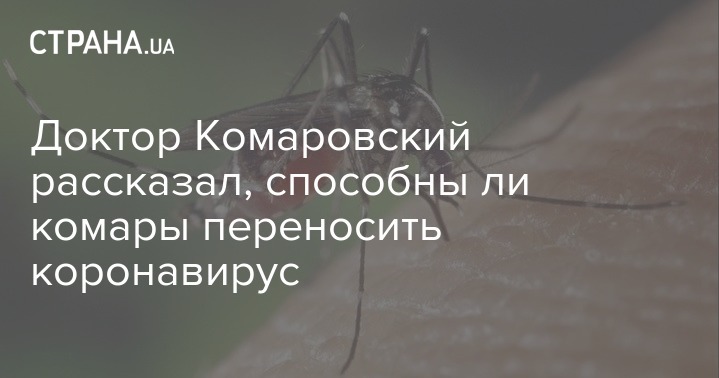 Доктор Евгений Комаровский рассказал о том, могут ли кровососущие насекомые, в частности комары переносить коронавирусную инфекцию Covid-19. Ответ врача однозначен - комары не являются переносчиками этого заболевания. Инфекция передается от человека к человеку обычно при тесном контакте с инфицированным пациентом.