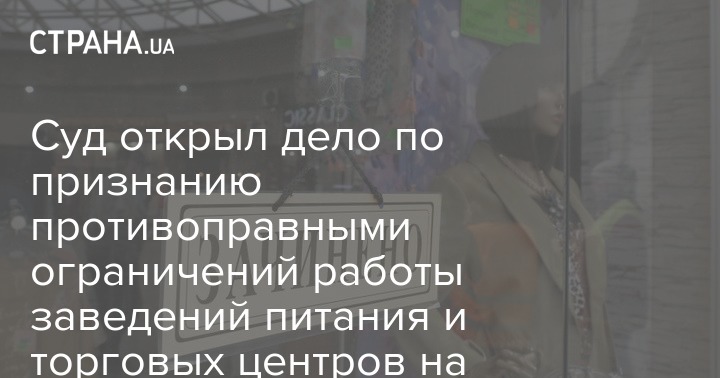 Окружной административный суд города Киева открыл производство по административному делу по иску предпринимателя из Одесчины к Кабинету министров, в котором он просит суд признать противоправными установленные Кабмином до 24 апреля 2020 года ограничения относительно работы заведений питания и развлекательных центров.