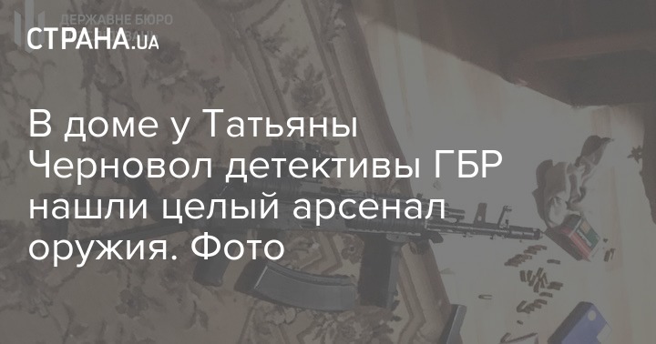 А в ходе сегодняшнего обыска в доме у Черновол выявили настоящий арсенал - как минимум автоматическую винтовку, пистолет и нож, как передает пресс-служба ГБР.