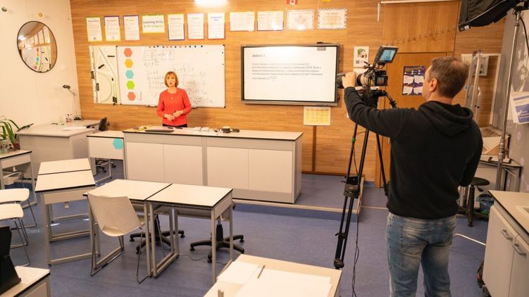 "Эта школа - тоже наш проект, она не работает в период карантина, но хорошо оснащена всем необходимым. На месте мы помогаем с организационными вопросами: что в каком классе снимать, какому учителю с какой звездой проводить урок и тому подобное", - рассказала Сидорук.