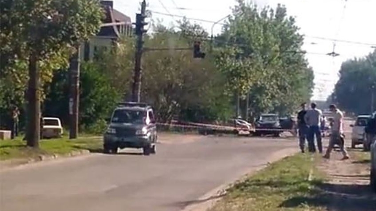 В интернете также появились фотографии с места, где был подорван автомобиль Toyota Land Cruiser Игоря Плотницкого.