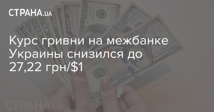 Курс гривни на межбанке Украины снизился до 27,22 грн/$1