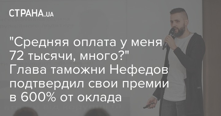 Глава Государственной таможенной службы Украины Максим Нефедов подтвердил информацию о получении премии в 600% от размера оклада