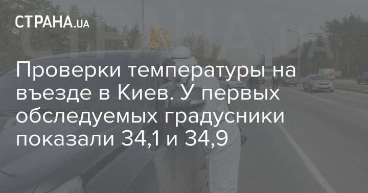 На Бориспольском посту, установленном на въезде в Киев для проверки температуры въезжающих, начали проверки транспорта. Температура у первых остановленных оказалась в районе 34-35 градусов, однако это никого не смущает.