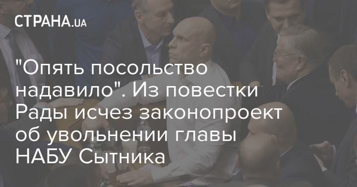 В Украине из повестки внеочередного заседания Верховной Рады в пятницу исчез законопроект, который позволит снять с занимающей должности главу НАБУ Артема Сытника.