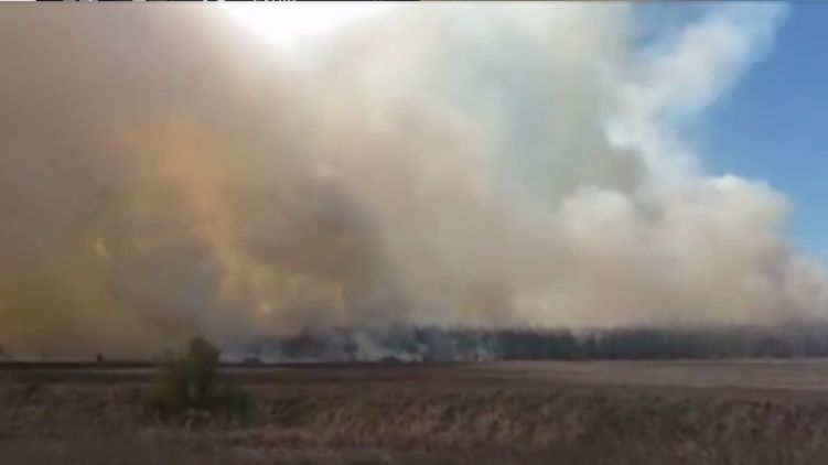 Как отмечается, пожар происходит около села Савенки Вышгородского района Киевской области. По словам очевидцев, огонь привел к сильному задымлению, которое периодически закрывает солнце.