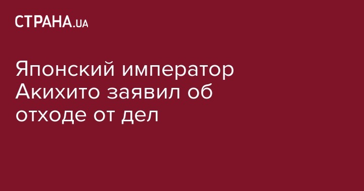 Как сообщала "Страна", император Японии Акихито уже несколько раз сообщал о том, что готовится отойти от дел. Ранее сообщалось, что 8 августа будут транслировать видео обращение императора Акихито, в рамках которого он официально объявит, что слагает с себя полномочия. В июле император сообщал, что хочет отречься от престола прежде, чем станет слишком слаб для полноценного исполнения своих обязанностей.
