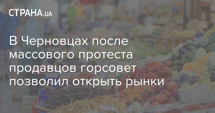 Как сообщала "Страна", в регионах Украины прошла волна протестов из-за закрытия рынков. Так, в Черновцах предприниматели с местных рынков вышли к обладминистрации с требованием разрешить им работать в условиях карантина.