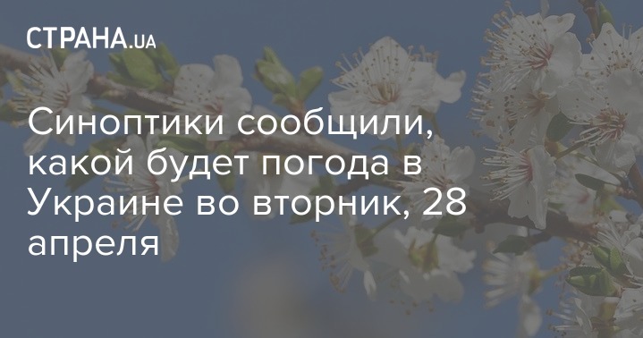 Во вторник, 28 апреля, в Украине ожидается заметное потепление, погода будет сухой и солнечной. Осадков не прогнозируют.