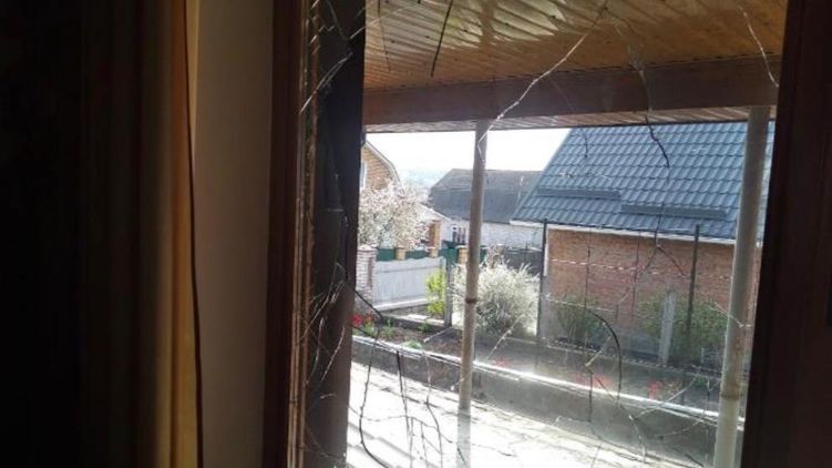 Разбитое окно журналиста. Фото: Нацполиция Украины