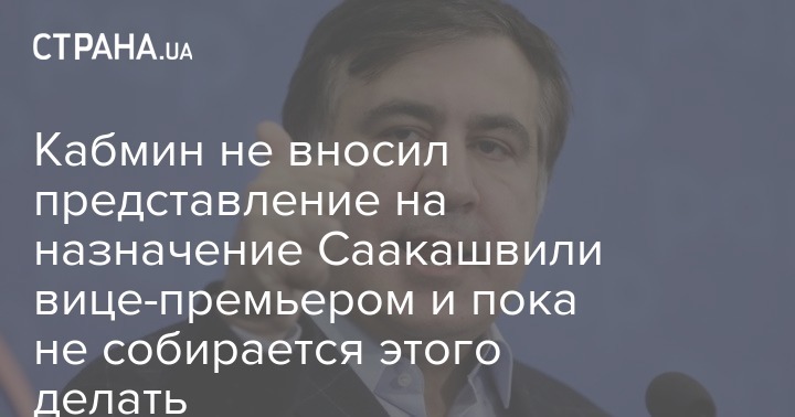 Кабмин пока не направлял представление о назначении Михаила Саакашвили вице-премьером по вопросам реформ в Верховную Раду, вопреки информации ряда СМИ о том, что премьер якобы представление отозвал.