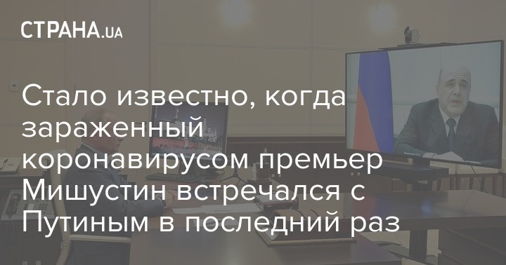 Премьер-министр России Михаил Мишустин, который заразился коронавирусом, не встречался с Владимиром Путиным больше месяца. Последний раз лично Мишустин виделся с президентом России 24 марта.