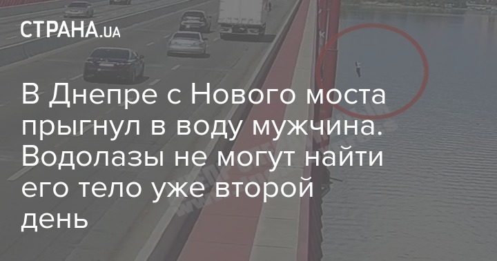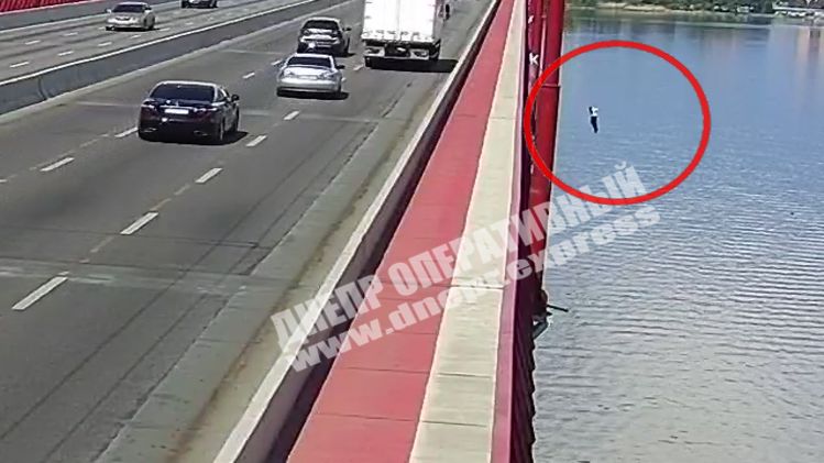 В Днепре неизвестный мужчина спрыгнул с Нового моста в форватер реки. Инцидент произошел в воскресенье, 3 мая и попал на камеру видеонаблюдения.