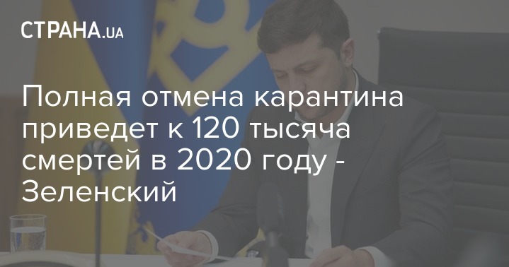 Полная отмена карантина приведет к 120 тысяча смертей в 2020 году - Зеленский