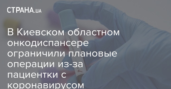 В Киевском областном онкодиспансере у одного из пациентов выявили коронавирус. После этого там ограничили плановые операции, остальные отделения клиники работают в штатном режиме. Об этом сообщил замдиректора диспансера Валерий Костиков, передает "Интерфакс-Украина".
