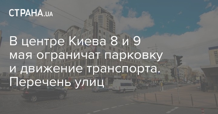 На некоторых улицах в Киеве, в связи с праздниками, ограничат движение транспорта и возможность парковки с 8 мая по 9 мая.