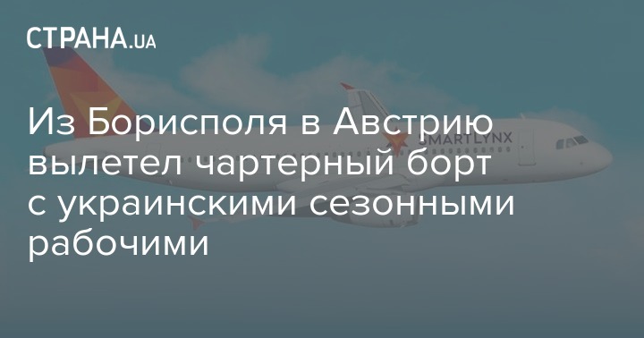 Из аэропорта "Борисполь" в пятницу вечером вылетел в Австрию самолет, на борту которого находятся более 200 украинских сезонных рабочих. Заробитчан в Западную Европу доставляет латвийский чартер.