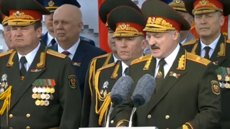 Александр Лукашенко выступил на параде ко Дню Победы. Скриншот: t.me/stranaua