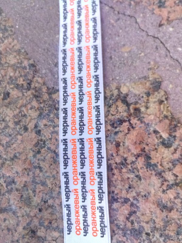 На праздновании корреспондент "Страны" заметил "замену" запрещенной георгиевской ленте. Это - ленточка, где в ряд написано "Черный, оранжевый", соответствующими цветами на белом фоне.