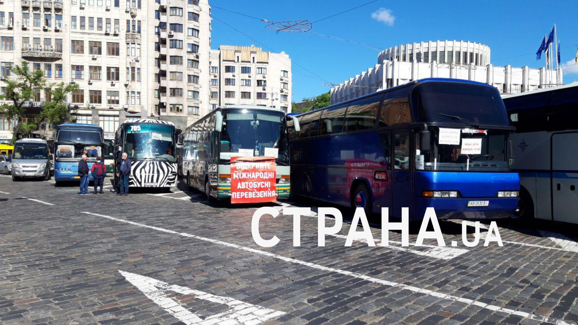 10:45 На Европейской площади в 10:00 началась акция протеста перевозчиков. Участники намерены добиться от Кабмина разрешения на внутренние и международные перевозки. Из-за большого количества припаркованных автобусов в центре Киева образовалась пробка.