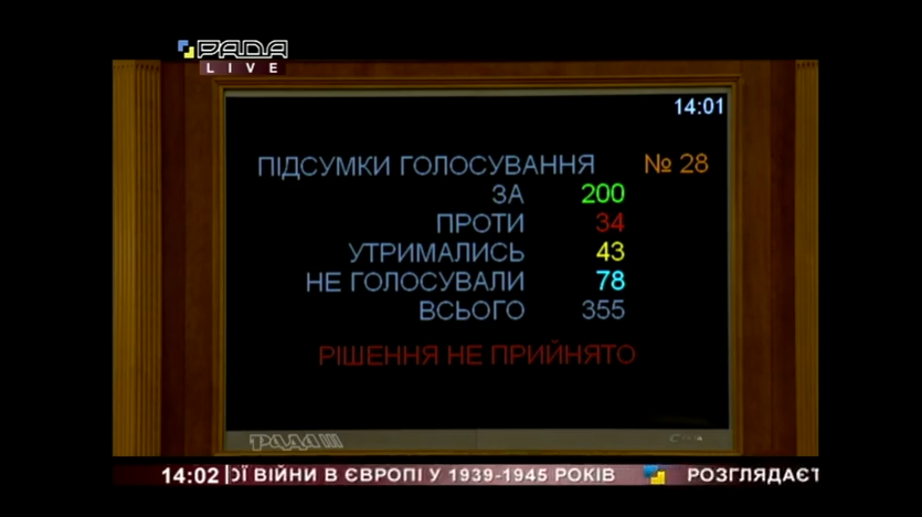 13:46 Включают и рассматривают проект постановления об Обращении Верховной Рады Украины к национальным парламентам иностранных государств, международных организаций и их парламентских ассамблей по случаю 75-й годовщины окончания Второй мировой войны в Европе в 1939-1945 годах.