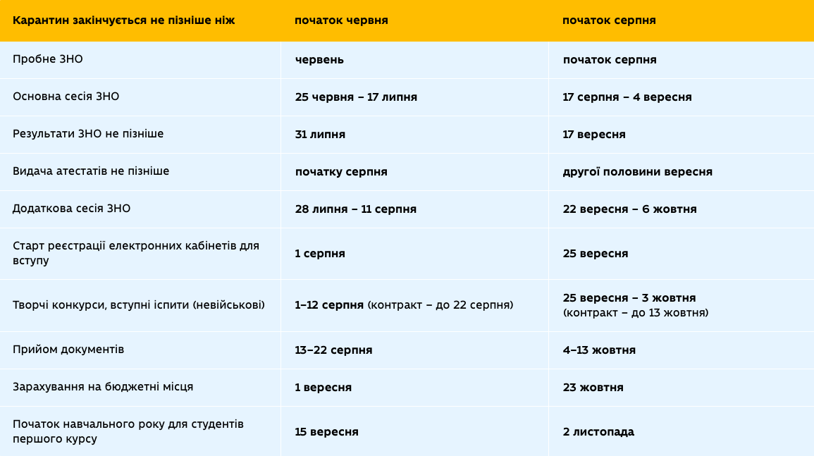 На сайте министерства образования опубликованы два графика проведения ЗНО - в зависимости от того, когда закончится карантин - в начале июня или в начале августа.
