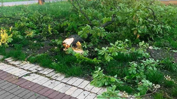 В Киеве порывы сильного ветра вечером 12 мая сломали много веток. Кроме того, ветер повалил десятки деревьев. Коммунальщики ликвидируют последствия ветра.