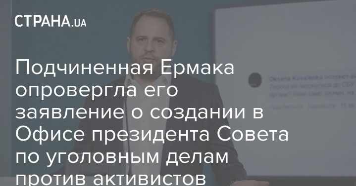 Подчиненная Ермака опровергла его заявление о создании в Офисе президента Совета по уголовным делам против активистов