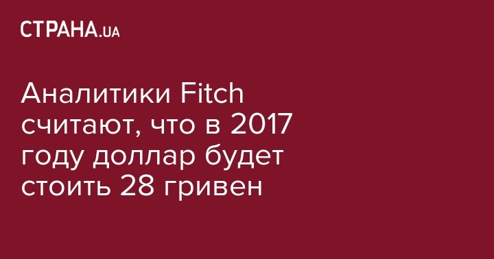 "На 2016 год наш прогноз – в среднем 26 гривен за доллар, что соответствует фактическим показателям первого полугодия, когда средневзвешенный курс составлял 25,47 гривны за доллар", – говорится в сообщении агентства. В  следующем году, считают аналитики Fitch, курс может вырасти до 28 гривен за доллар. "Наш прогноз – 28 гривен за доллар в 2017 году", – отметили эксперты.