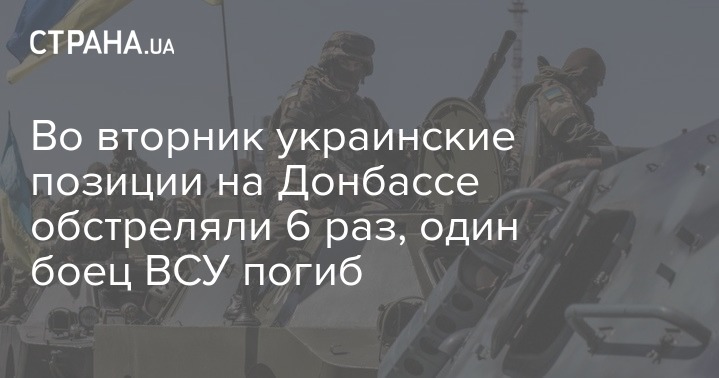 "За прошедшие сутки вооруженные формирования Российской Федерации 6 раз нарушили режим прекращения огня и обстреляли наши позиции из гранатометов различных систем, крупнокалиберных пулеметов и стрелкового оружия…К сожалению, в результате вражеского обстрела Украина потеряла одного мужественного защитника", - говорится в сообщении, на официальной странице штаба ООС в Facebook в среду утром.