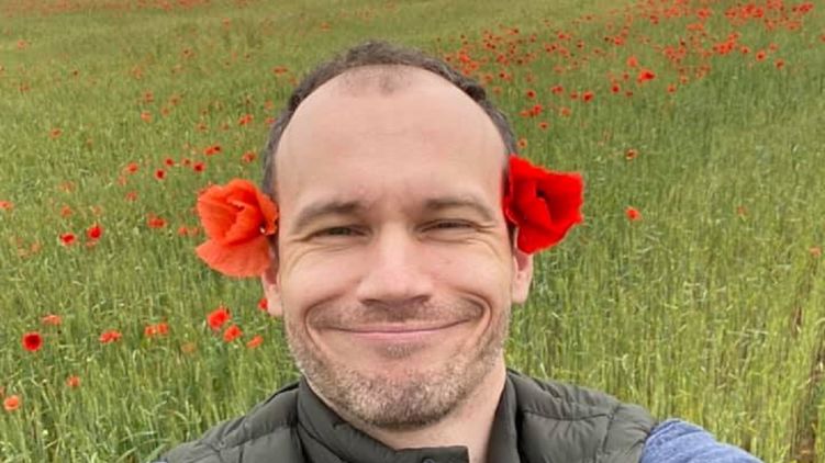 Малюська показался с маками на голове. Фото: facebook.com/Denis-Malyuska