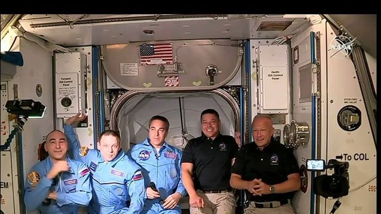 Появились фото и видео экипажа корабля Crew Dragon на борту Международной космической станции