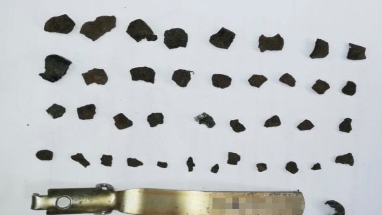 Полицейские прибыли на место происшествия. Во время осмотра совместно со специалистами взрывотехнического отдела они изъяли металлические обломки гранаты "Ф-1" и предохранительный рычаг осколочной ручной гранаты, а также образцы грунта.