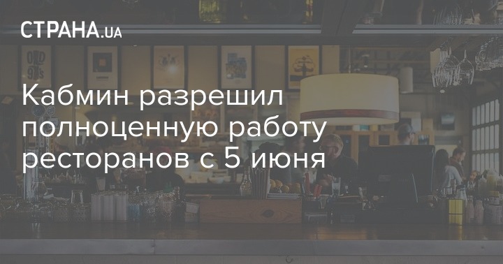Кабмин разрешил возобновить полноценную работу украинским кафе и ресторанам с 5 июня. Такое решение правительство поддержало в среду, 3 июня.