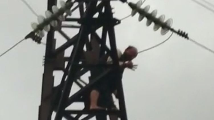 Полиция совместно со спасателями и "Киевоблэнерго" в Мировновке в Киевской области спасла нетрезвого мужчину, который залез на высоковольтную вышку.