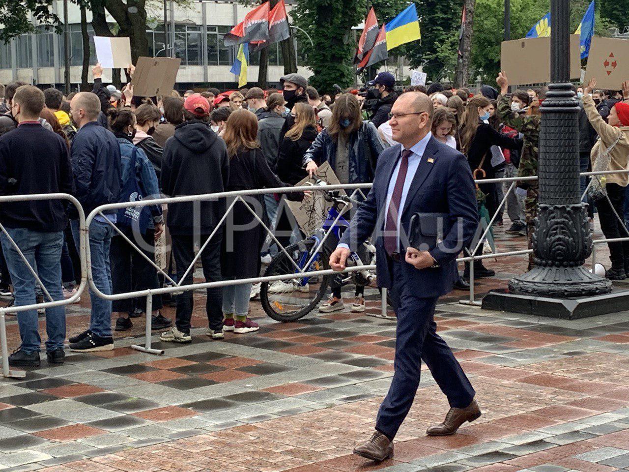 09:48 К митингующим пришел депутат "Слуги народа" - Евгений Шевченко. Ранее депутат эмоционально выступил в Раде за отставку Авакова