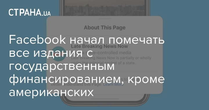 C сегодняшнего дня Facebook начал помечать страницы средств массовой инофрмации, которые финансируются государствами. При этом американские медиа, которые существуют за счет бюджета Штатов, никак маркироваться не будут.