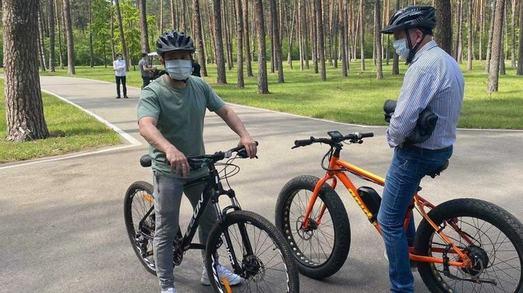 Зеленский встретился под Киевом с журналистами и покатался с ними на велосипеде