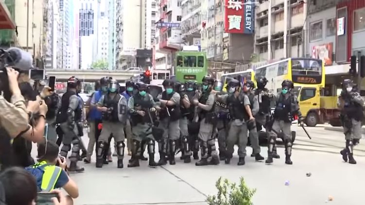 Во вторник вечером на улицы Гонконга вышли сотни протестующих. Они блокировали дороги в центральном районе города. Таким образом был нарушен запрет на собрания более восьми человек, введенный правительством Гонконга для борьбы с распространением коронавируса. Для разгона толпы полиция применила перцовые баллончики.