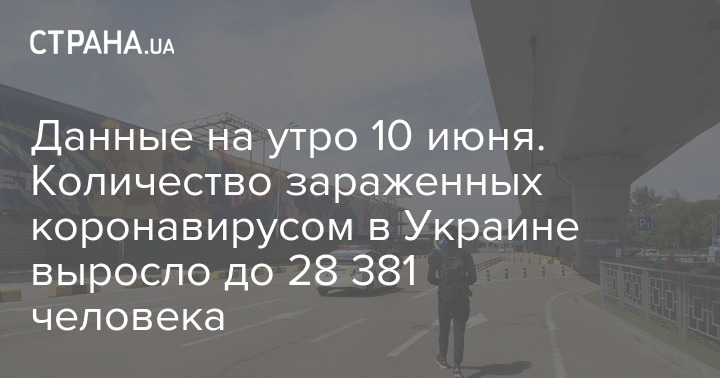 По данным ЦОЗ Минздрава Украины, на 10 июня (по состоянию на 09:00) в Украине 28 381 лабораторно подтвержденный случай Covid-19. Из них 833 летальных, а 12 769 пациентов выздоровели с начала эпидемии. Днем ранее, 9 июня, на это время в стране было 27 856 зараженных украинцев.