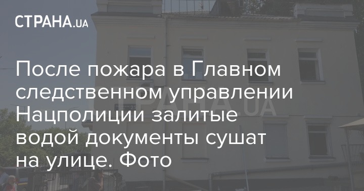 После пожара в Главном следственном управлении Нацполиции залитые водой документы сушат на улице. Фото