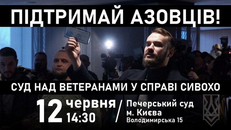 "Заседание состоится 12 июня в 14:30 в Печерском райсуде Киева (улица Владимирская, 15). Призываем патриотов прийти на суд и поддержать ветеранов!" - сказано в сообщении.