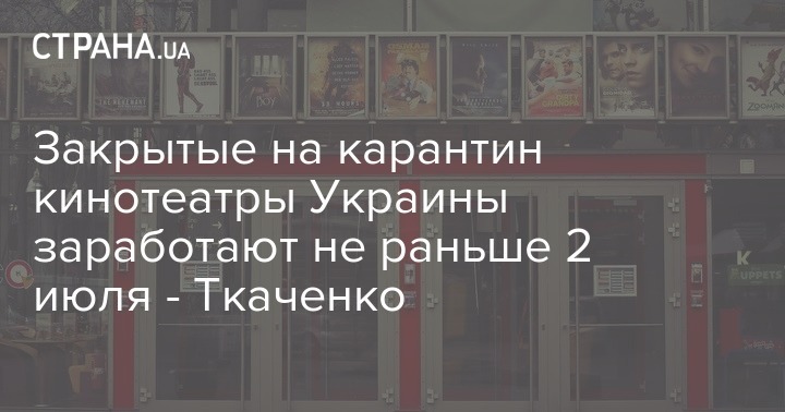 Закрытые на карантин кинотеатры Украины заработают не раньше 2 июля - Ткаченко