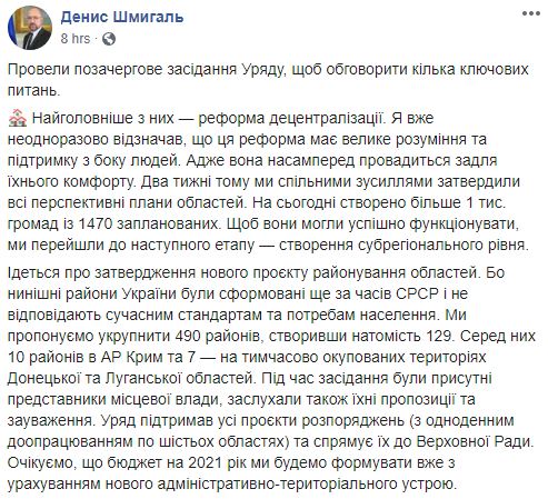 Об этом написал премьер-министр Денис Шмыгаль в социальной сети Facebook.